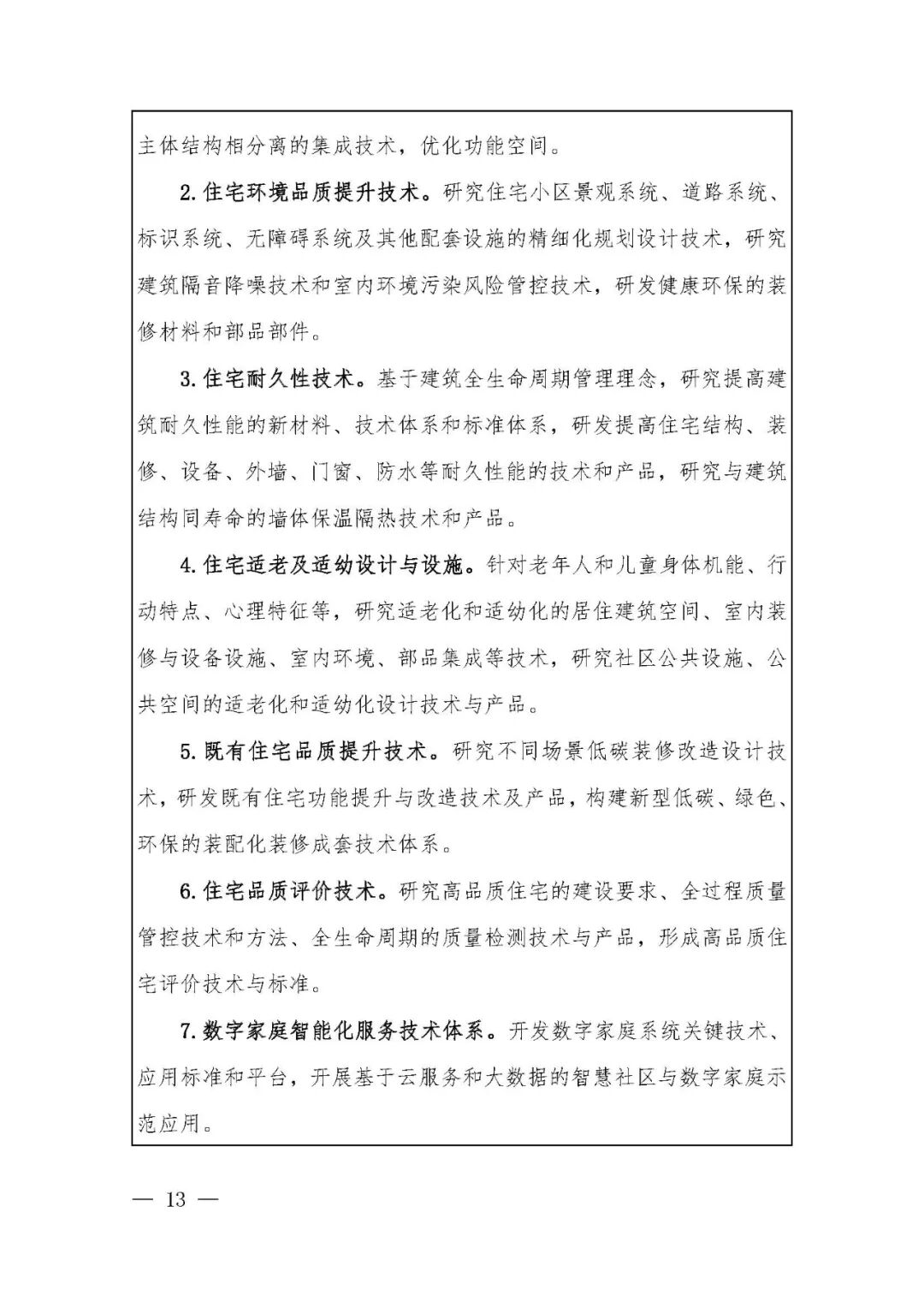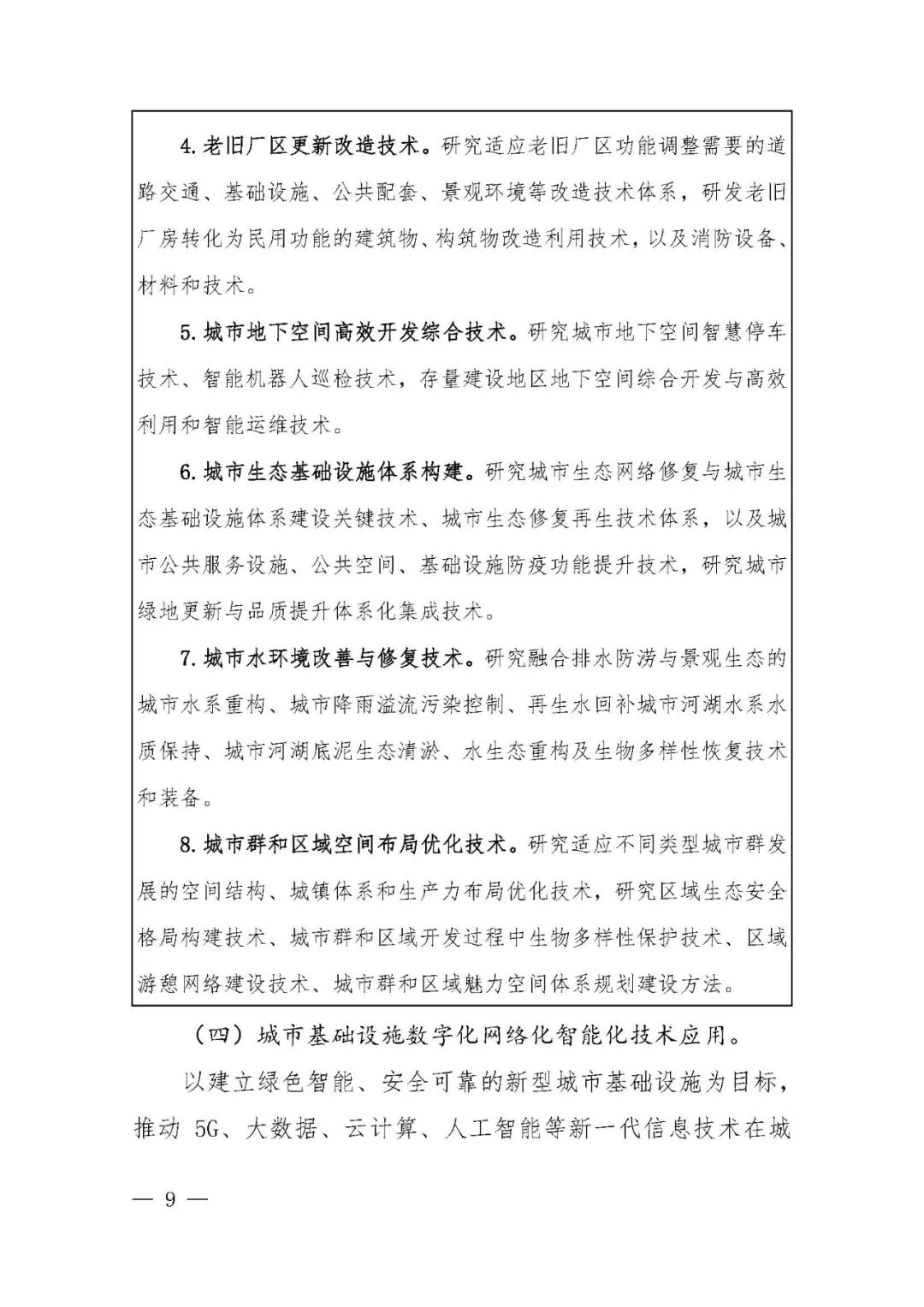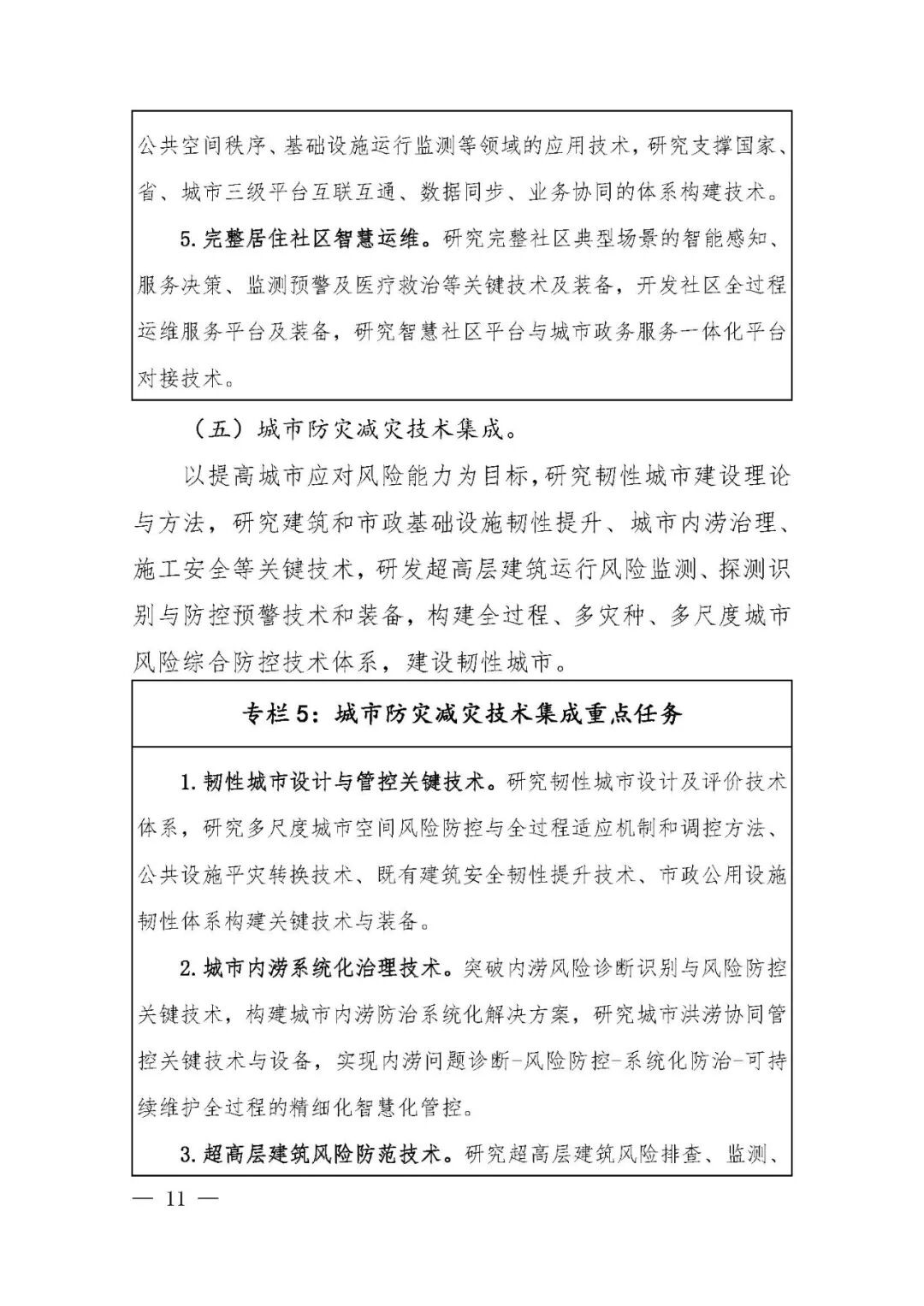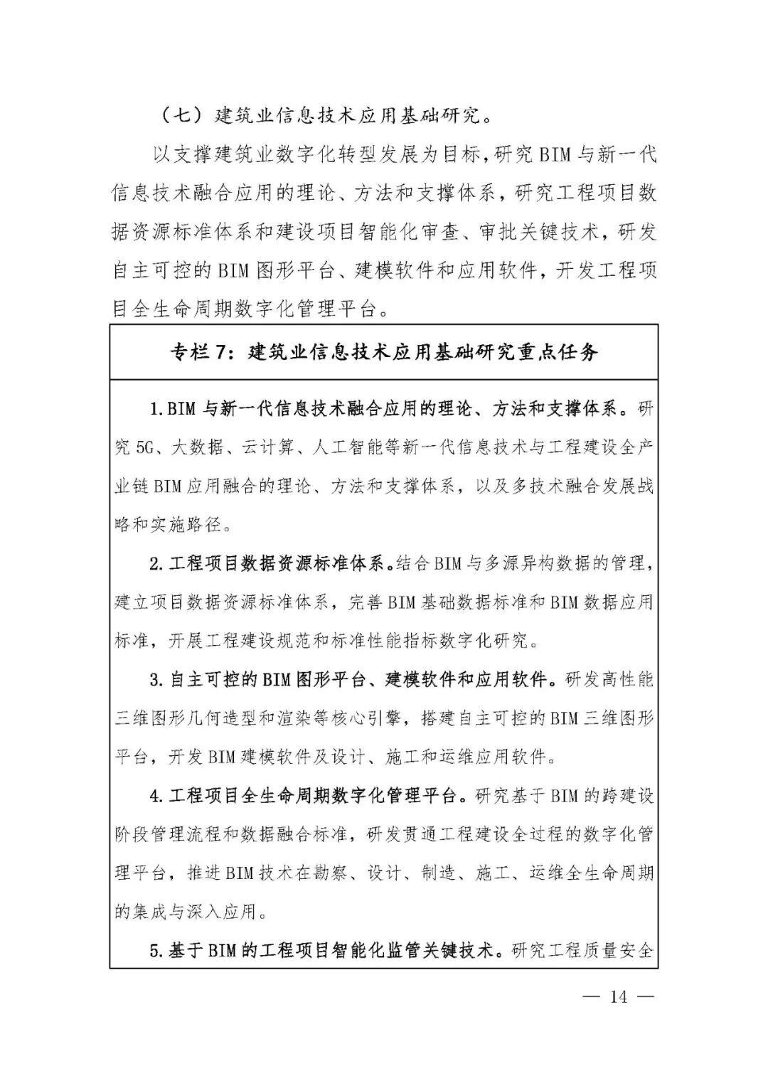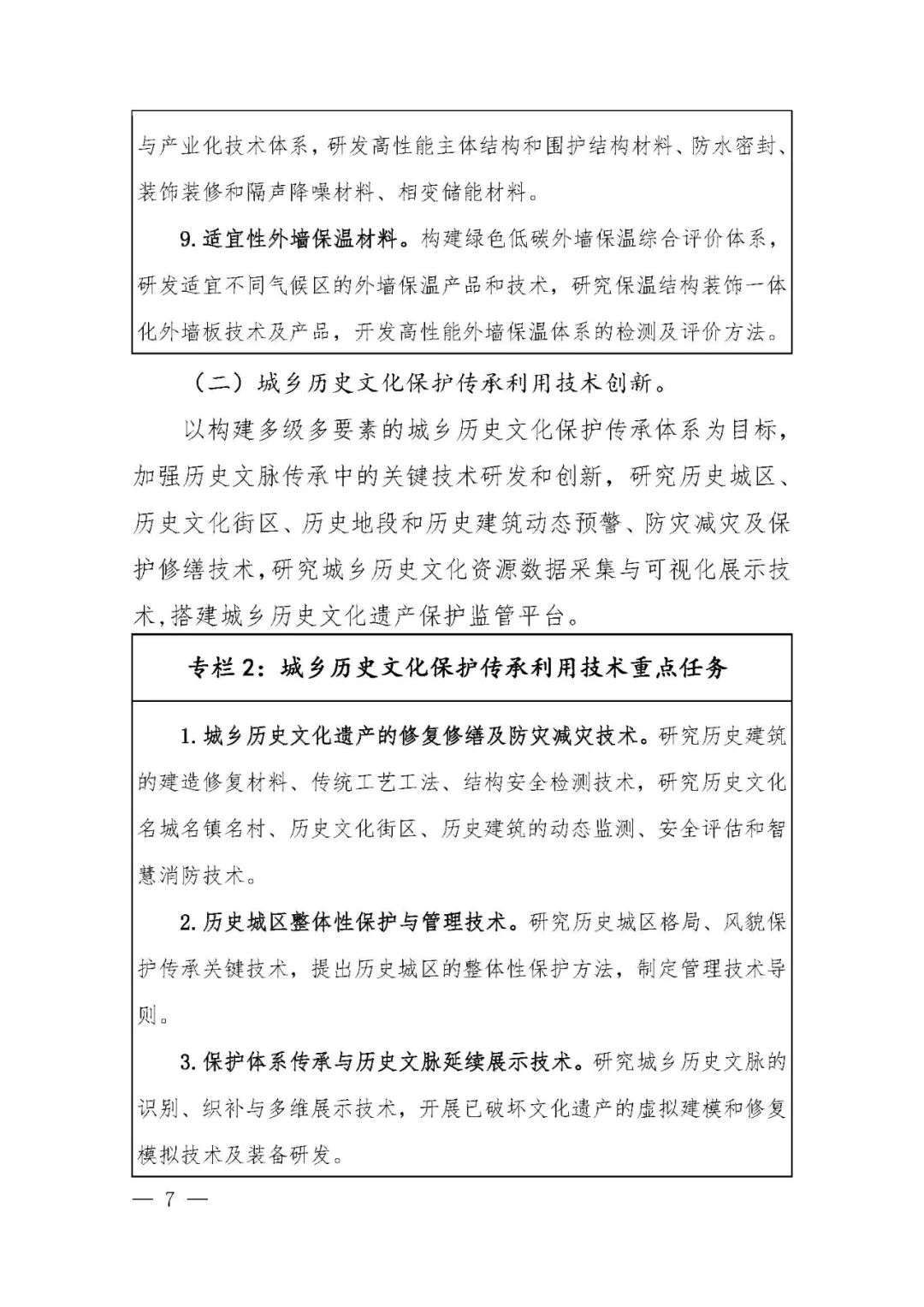 规划聚焦“十四五”时期住房和城乡建设*任务,在城乡建设绿色低碳技术研究、城乡历史文化保护传承利用技术创新、城市人居环境品质提升技术、城市基础设施数字化网络化智能化技术应用、城市防灾减灾技术集成、住宅品质提升技术研究、建筑业信息技术应用基础研究、智能建造与新型建筑工业化技术创新、县城和乡村建设适用技术研究9个方面,加强科技创新方向引导和战略性、储备性研发布局,突破关键*技术、强化集成应用、促进科技成果转化。