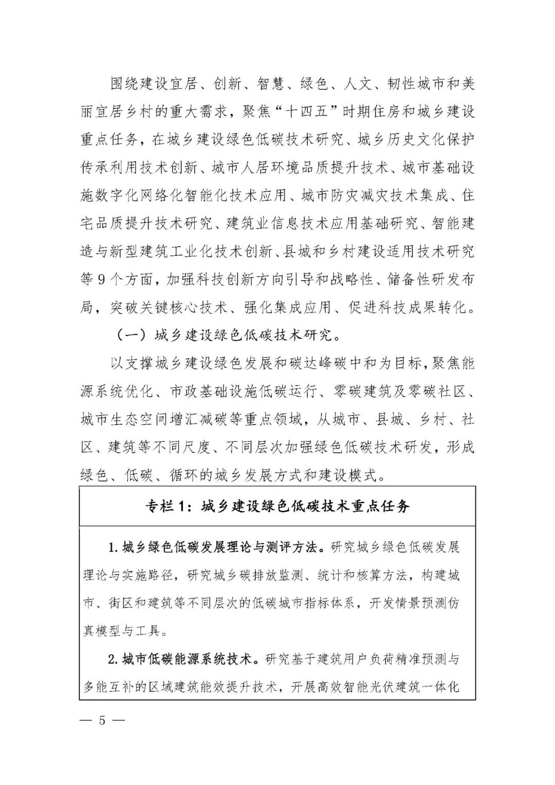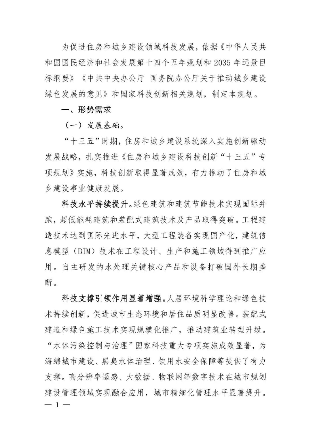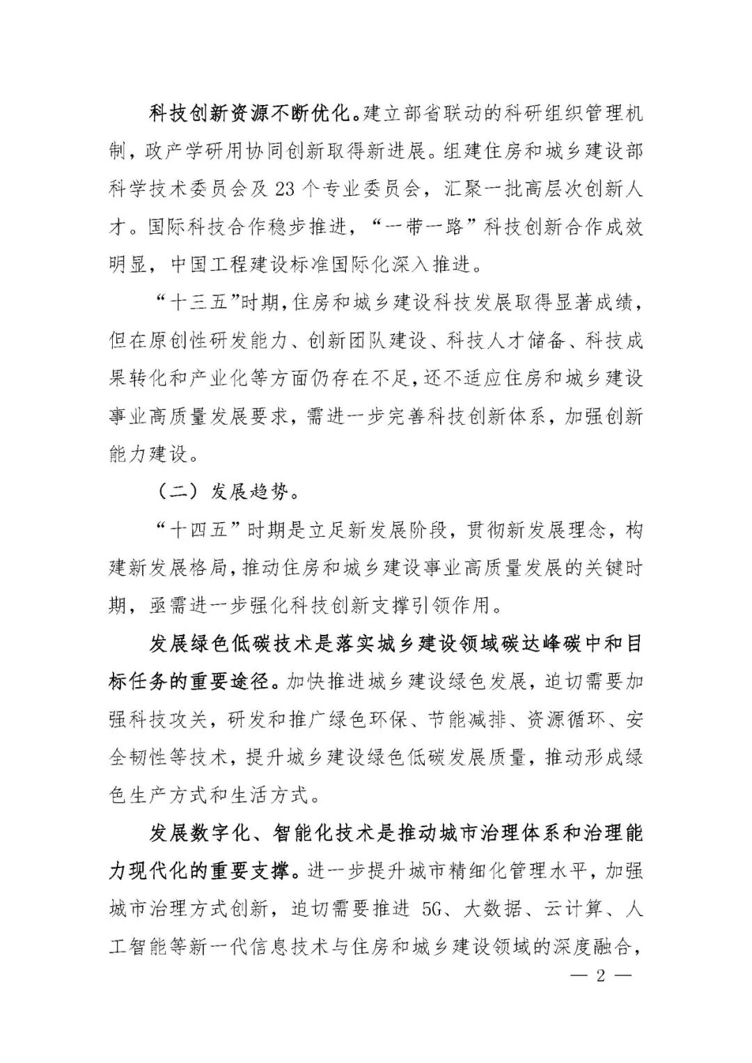 为促进住房和城乡建设领域科技发展,依据《中华人民共和国国民经济和社会发展第十四个五年规划和2035年远景目标纲要》《中共*办公厅 国务院办公厅关于推动城乡建设绿色发展的意见》和国家科技创新相关规划,近日,住房和城乡建设部印发《“十四五”住房和城乡建设科技发展规划》。