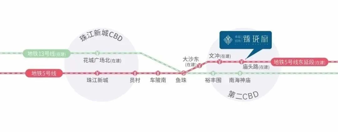 双地铁旁,一线直达珠江新城,项目位于地铁5号线东延段庙头路站旁(预计2022年开通)。