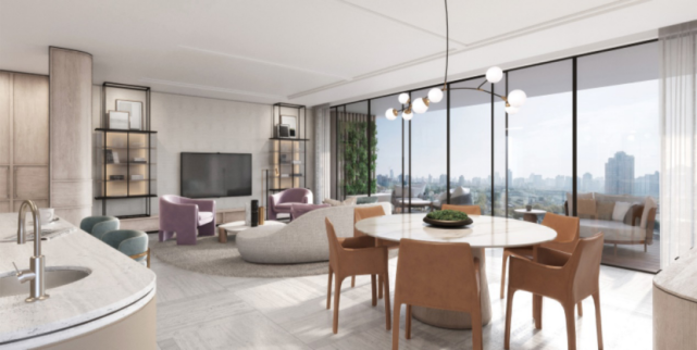 产品方面,之前有消息透露,项目主流户型是建面约123-352平大平层,还有几套顶层复式,均是大尺度奢阔产品。