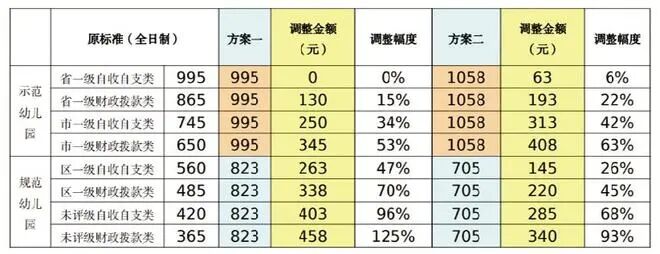 方案:两套方案规范幼儿园均涨幅较大