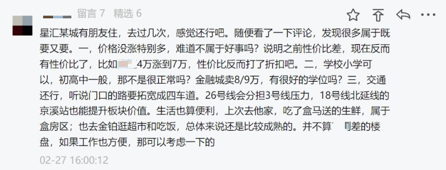 留言里观点各异,有说应该咬牙买天河的,有说白云就很宜居,不一定要天河,但大多数观点都比较理性。
