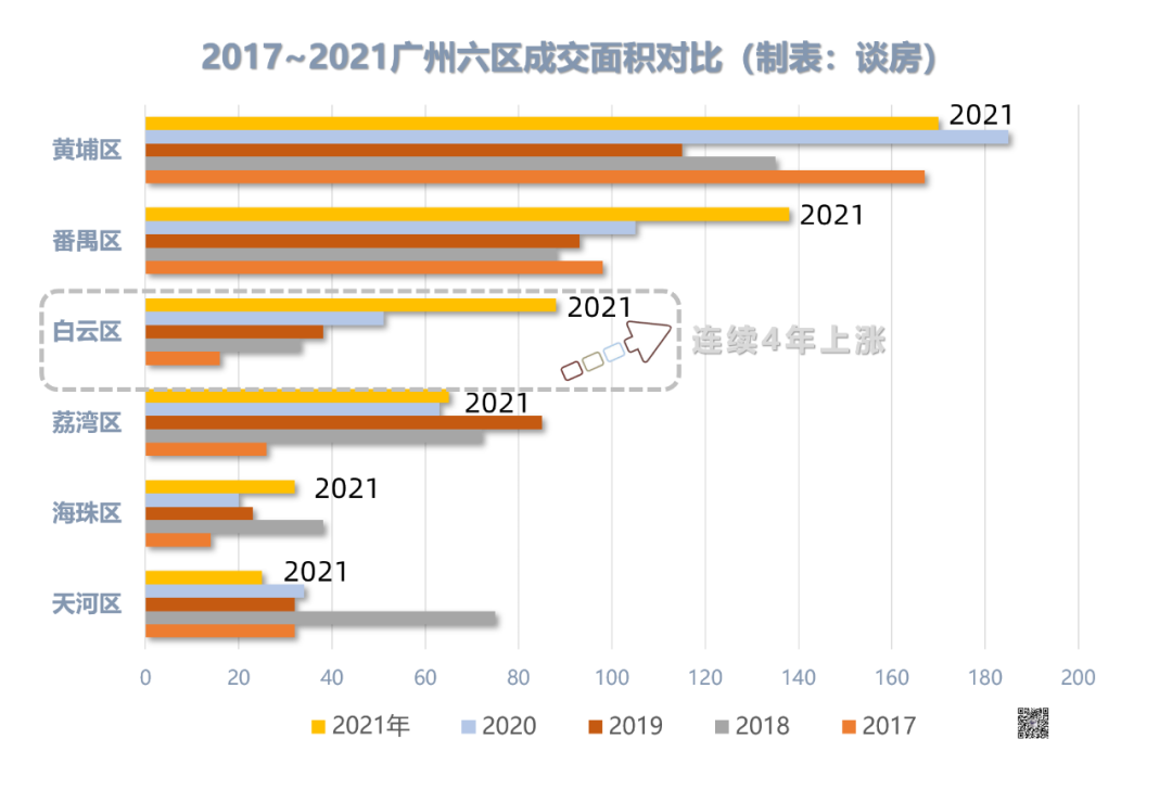白云区一手网签量,竟然连续四年稳步上涨。别以为这个稀松平常,在广州11区里,白云这是*!