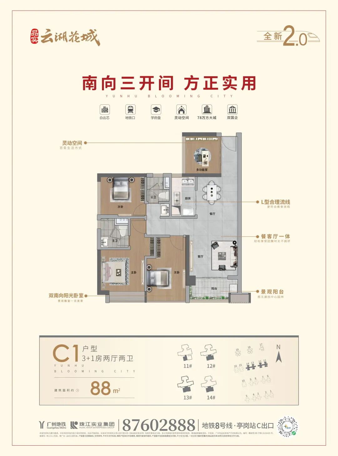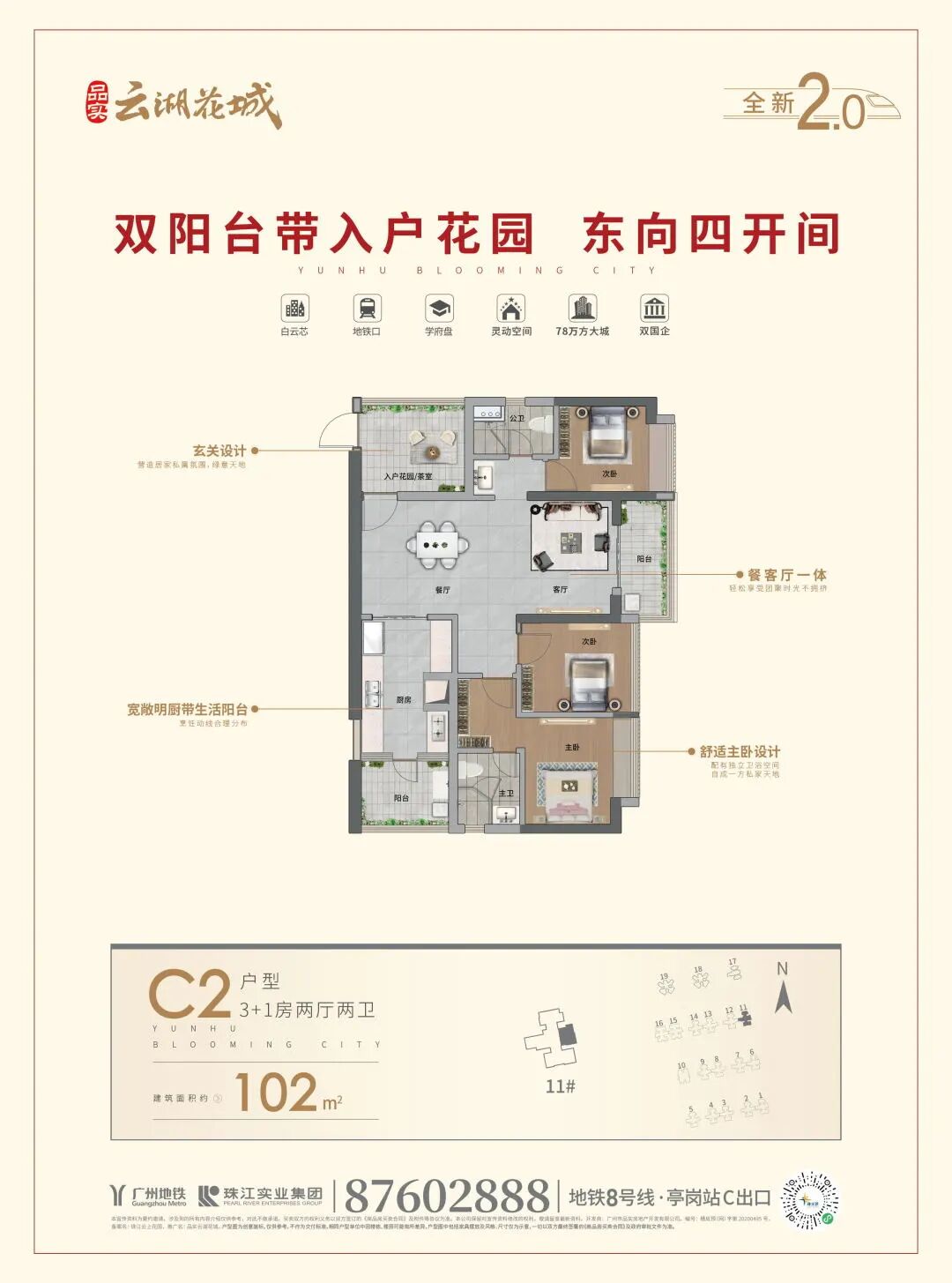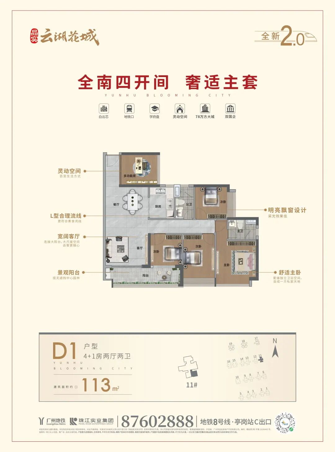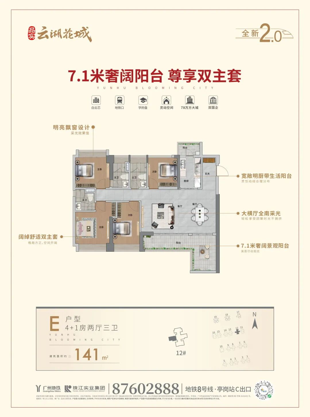 坐拥地铁8号线亭岗站上盖的云湖花城,日常通勤可换乘多达13条地铁线路,速达白云、越秀、荔湾、海珠四区,等白云站建成后,云湖花城业主们只需坐地铁20*左右即可到老城区陈家祠,半*内到达海珠*区域,尽情畅享广州便捷的立体交通网络。