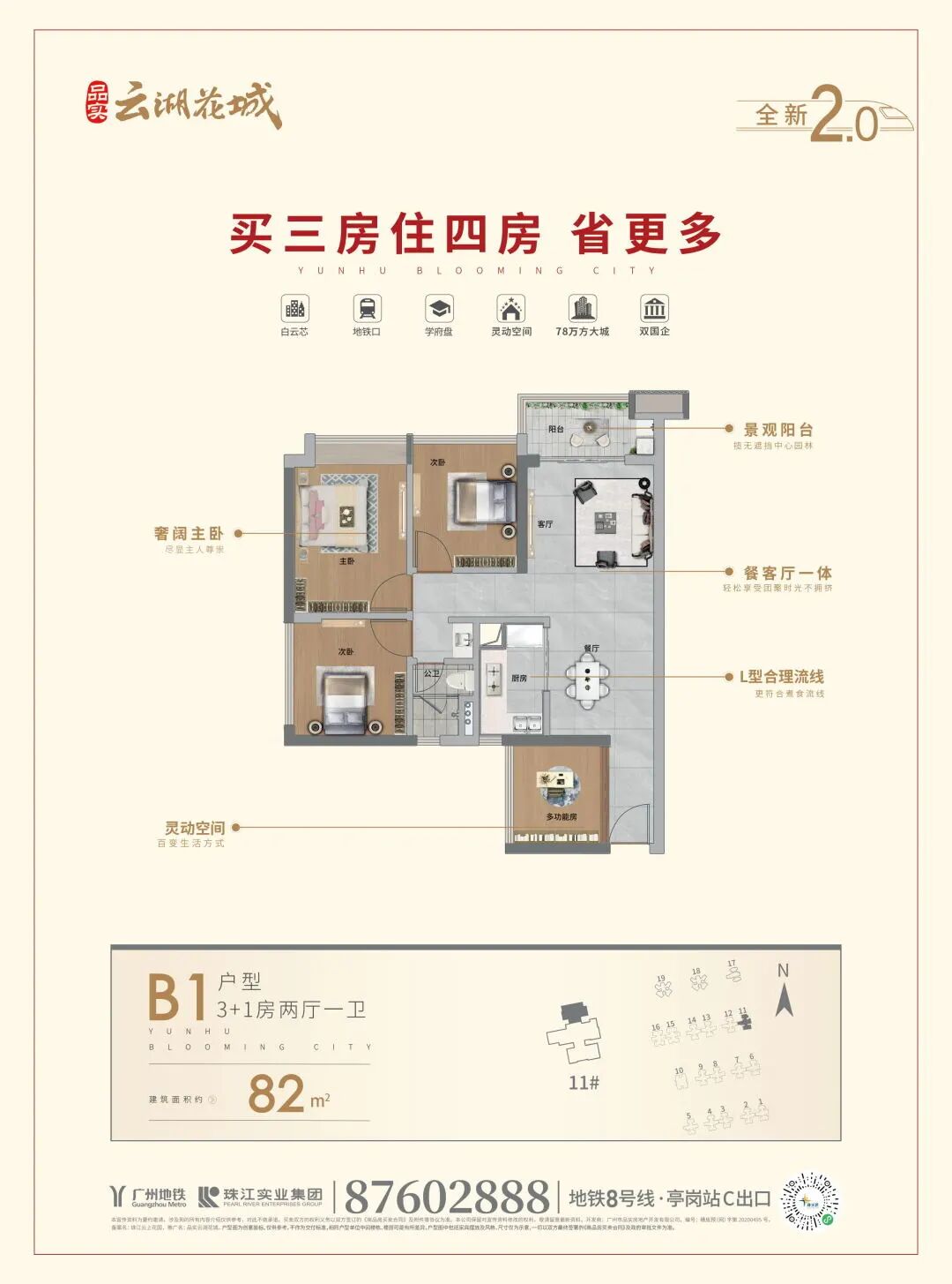 √建面约82㎡三孩时代*易上车*园景3+1房;
