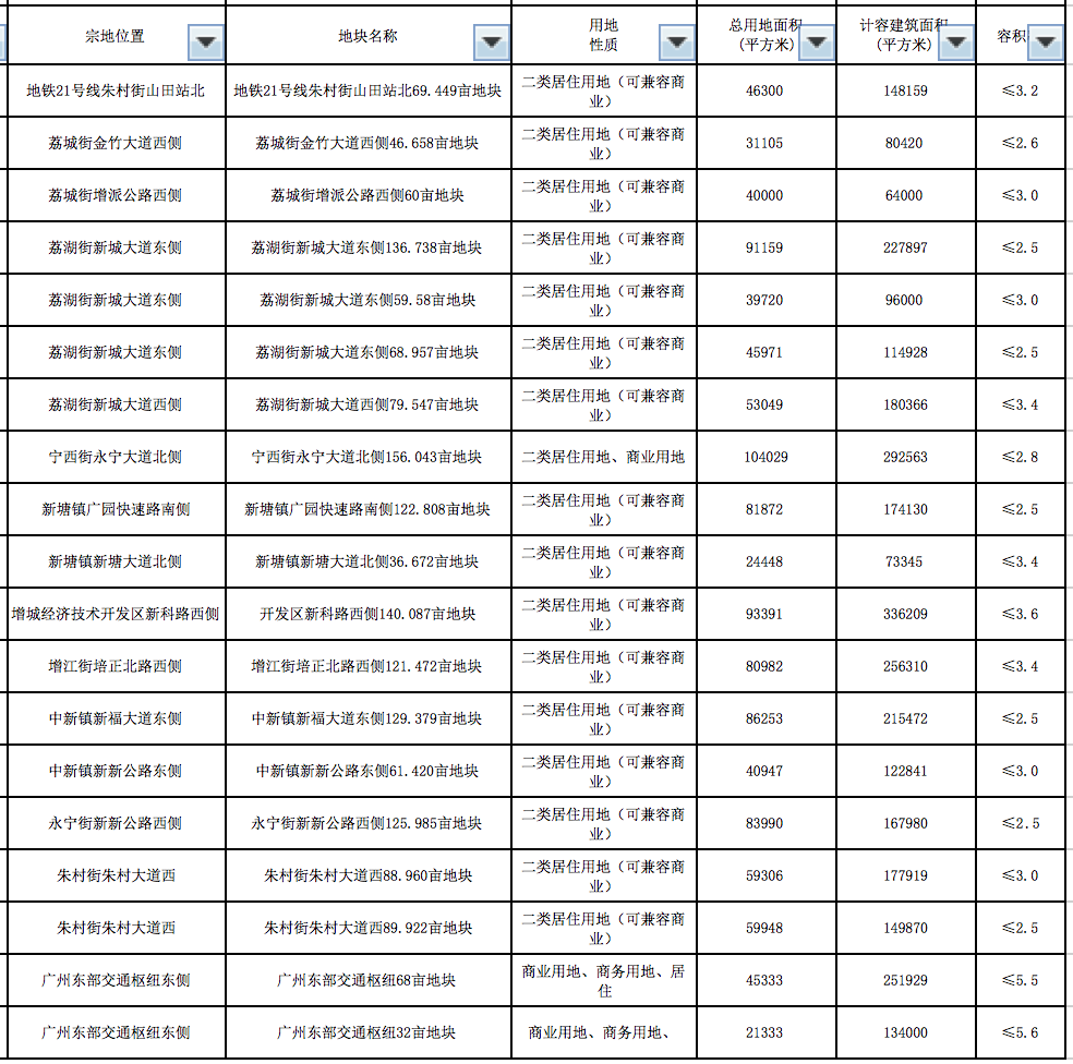地块主要分布于朱村、新塘、中新、荔城板块,当中不乏有回炉重造地块,再度挂牌,只求有人买。