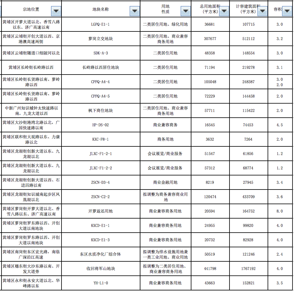 广州东部的黄埔7宗、增城17宗,合计有24宗;