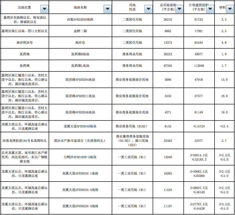 另外,商地方面,则全部集中在琶洲,分别位于琶洲西区和中二区。