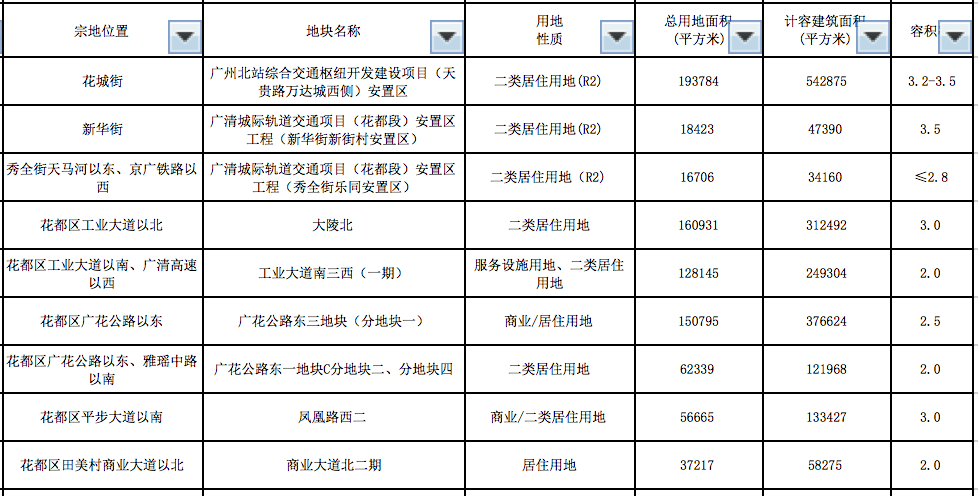 其中的大陵北地块,计容建面超31万平;广花公路东三地块,计容建面超37万平,都是巨无霸项目。