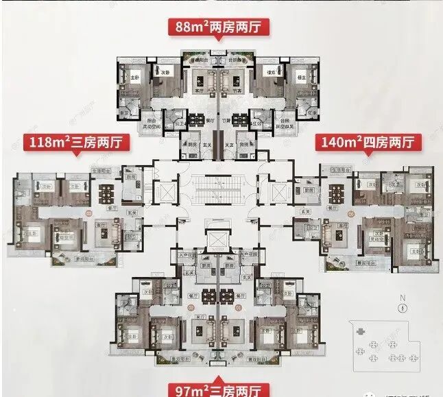 据亮点好房编辑了解,这次广府壹号加推的6#,涵盖了建面约77-88-97-118平-140平3*4房,带装修出售(以实际交付为准)。3梯6户,货量约180套,丰俭由人。