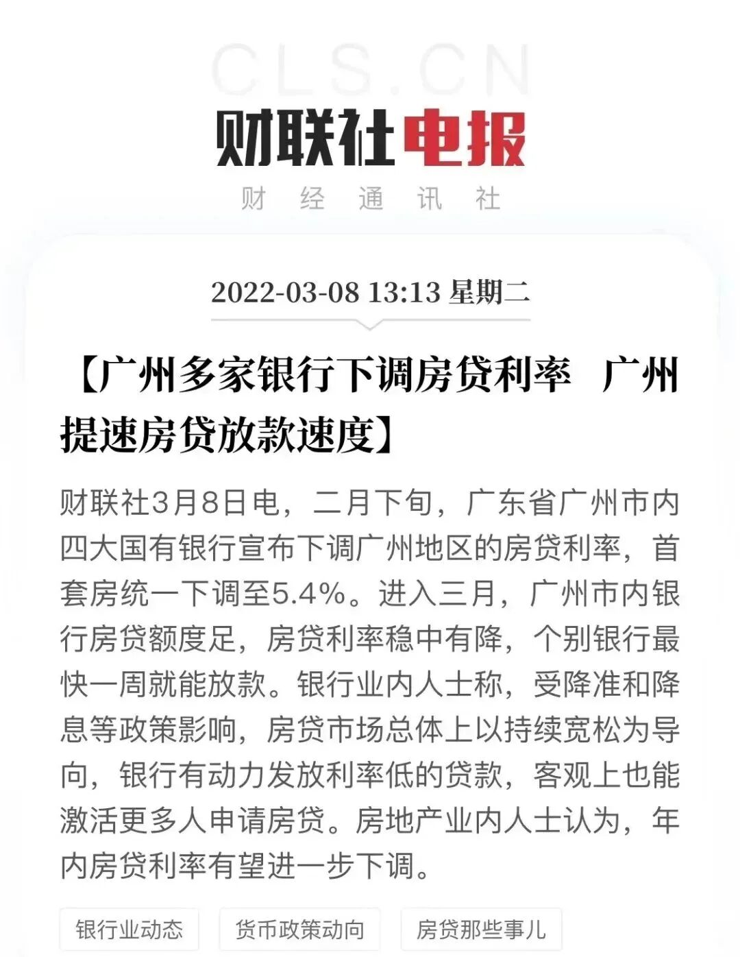 全国楼市进入房贷利率齐降局面,广州也不例外,外资银行渣打*低甚*做到4.8%!
