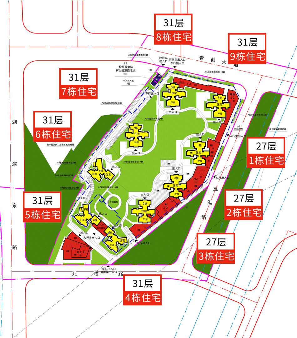 据亮点好房编辑了解,项目一共规划了9栋高层住宅,采取围合式的布局,中间是约3个足球场大的主题园林,小区内私密性很高。未来沿街也会建设一些商铺,小区也会有星光老年之家等配套。