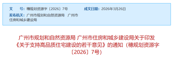 政策层面持续发力,为市场注入信心。4月2日,广州正式印发《关于支持高品质住宅建设的若干意见》,提出优化土地供给、完善公共服务、提升社区品质等多项举措,引导住宅产品“缩量提质”,推动住房需求从“住有所居”向“住有优居”转变,同时支持存量住房转为保障性租赁住房,助力存量去化。