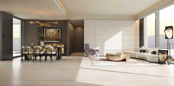 建面约571㎡户型,全屋南北对流,超大面宽设计最大化采光,搭配全景落地飘窗,将白云山景与CBD繁华尽收眼底,满足高品质人群的居住与社交需求。