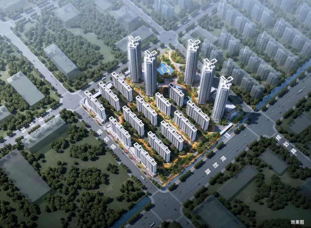 从效果图可以看到,所有楼栋向阳一字排列,包括5栋高层建筑、13栋11层的低密小高层。
