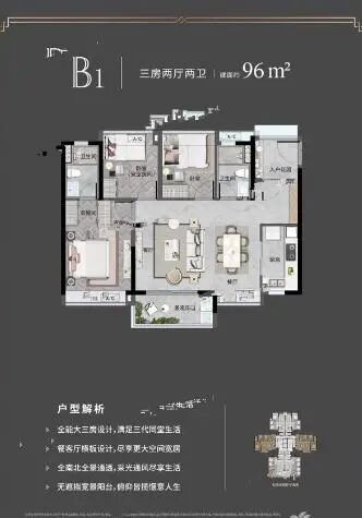 户型产品:81/83㎡小三房,94㎡大三房,100㎡四房