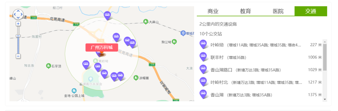 【交通—高速】距花莞高速出入口约1.8公里,预计今年通车;距增天高速(规划中)入口约200米,计划2022年通车;出门上高速,一路畅达天河。