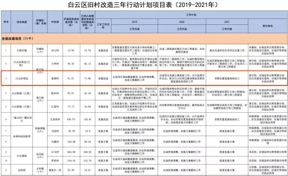 为加快进度,2019年白云区印发《广州白云“老城市新活力”三年提升计划(2019—2021年)的通知》,从今年起*2021年,三年内有序推进区内47个旧村改造项目。