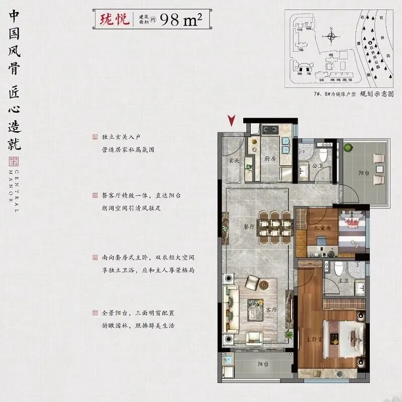 项目自身的户型和格调是加分项,新中式的外立面,沉稳且大气,让人一进小区门就要 一种尊贵感,户型也是方正实用,总的来说项目自身的硬实力非常的好。