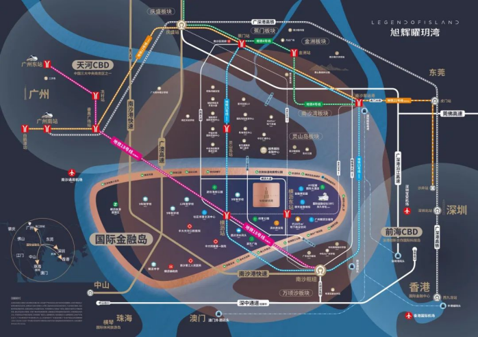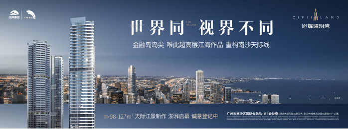 【区位】广州南沙横沥岛,作为全国*个金融岛,拥有国际视野和充满想象力的未来。 旭辉曜玥湾就位居*的横沥金融岛岛尖,是距出海口*近的一线江景项目,坐拥约7.8公里滨海景观带,隔江遥望灵山岛CBD的繁华,周边分布湿地公园、游艇会码头、IFF论坛*会址等*交流平台,奠定了这个项目的*品质。旭辉曜玥湾是横沥岛岛尖迄今*的超高层住宅项目,对客户居住圈层价值也是极高的,整个项目楼栋高低搭配,从入海口依次升高,*大限度让业主享受到入海景观。