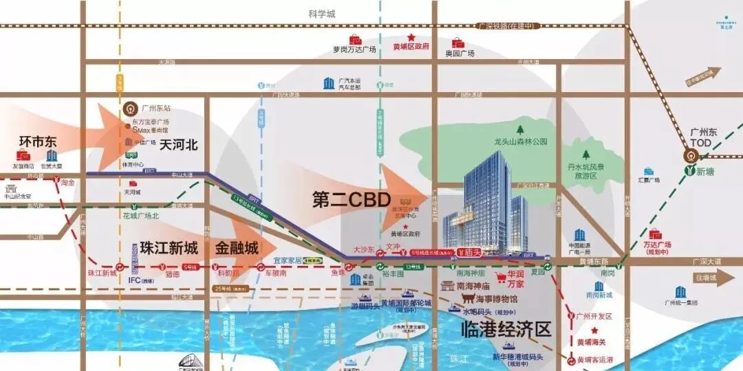 可以看到广州*线沿珠江水岸一路东进说明城市东进、CBD东进是大势所趋,