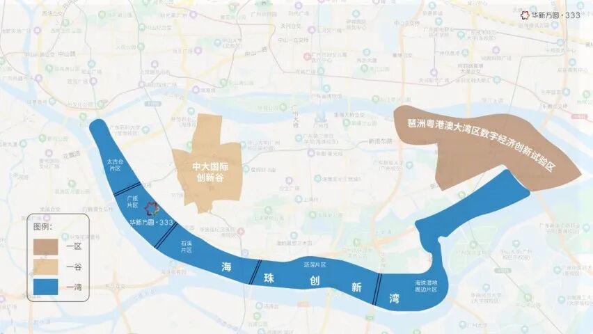 海珠创新湾,规划面积高达18.7平方公里!太古仓、广纸、石溪、沥滘、海珠湿地等片区打造集文化创意、都市旅游、人工智能、海洋科技、总部创新办公等产业于一体的服务经济价值带。