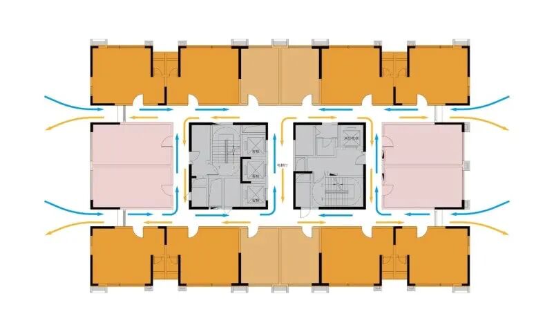 摒弃传统单过道,采用双环通走廊,极大提升通风采光;户户单边设计,无门户相对,舒适度不言而喻,打造私密品质生活。