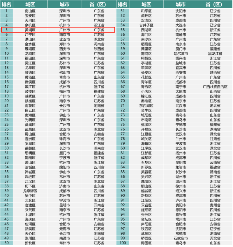 黄埔,再次榜上有名,并跻身全国前五!