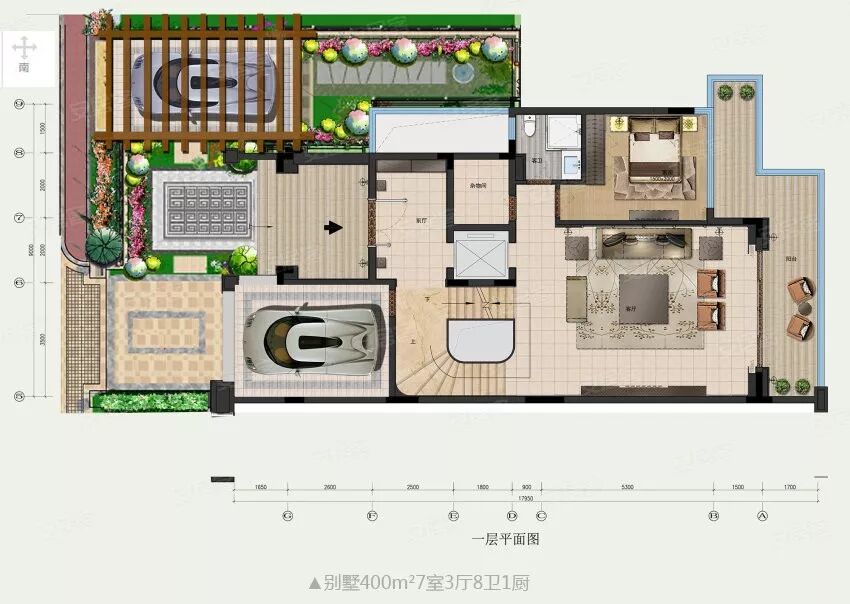 在别墅方面,400m²做7室3厅87卫1厨,360m²做7室2厅7卫1厨,都是4层设计(含地下层),活动空间挺宽敞,住起来比较舒服。同时,加上1:1车位的配置,对追求生活舒适度和方便性的客户来说,吸引力还是不错的。