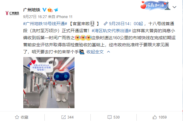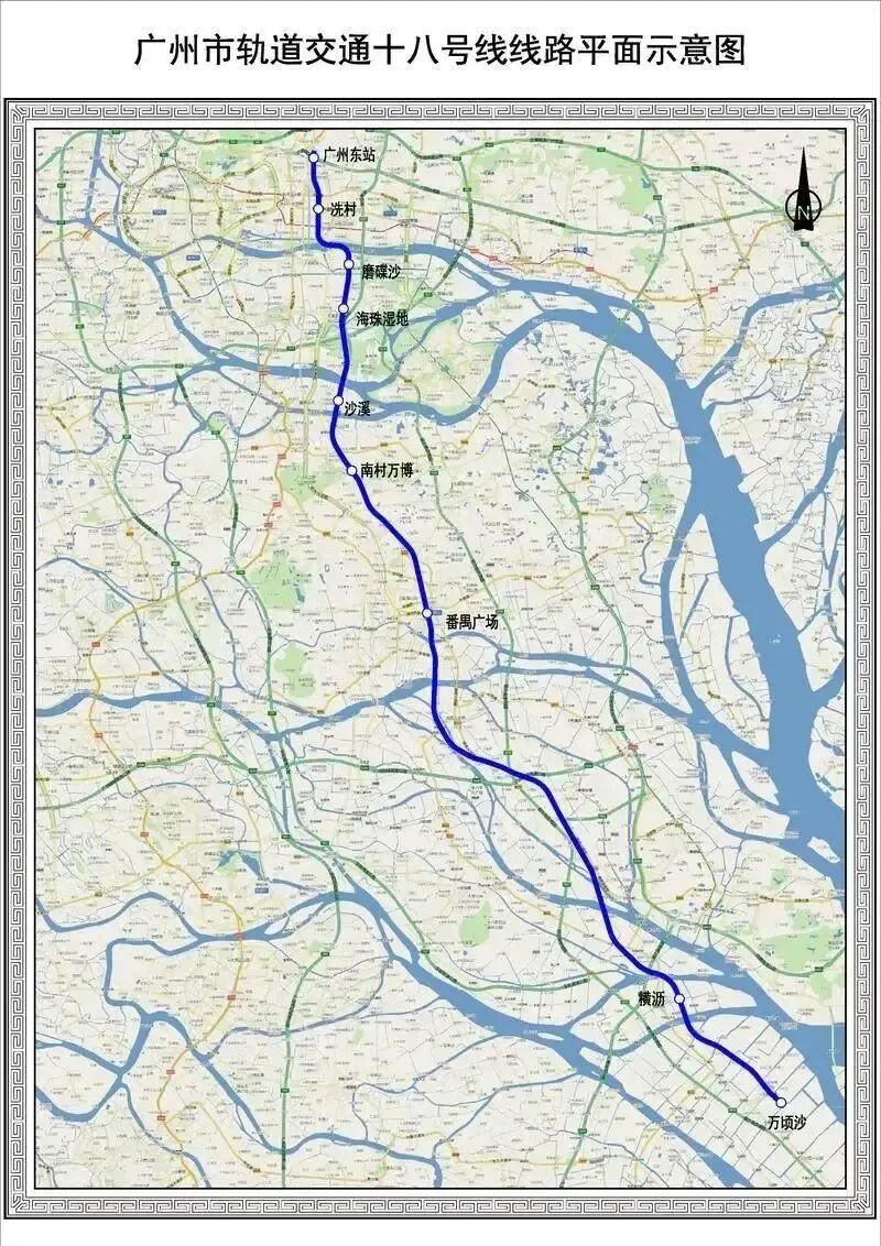 十八号线*通段自南沙万顷沙*天河冼村,全长58.3公里,设站8座。线路开通后,广州地铁运营总里程将达到589.4公里,车站增加*290座。