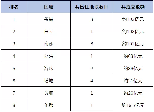 ③一共流拍8宗,其中番禺、白云各流拍1宗,南沙流拍2宗,增城流拍4宗,整体流拍率为36%。