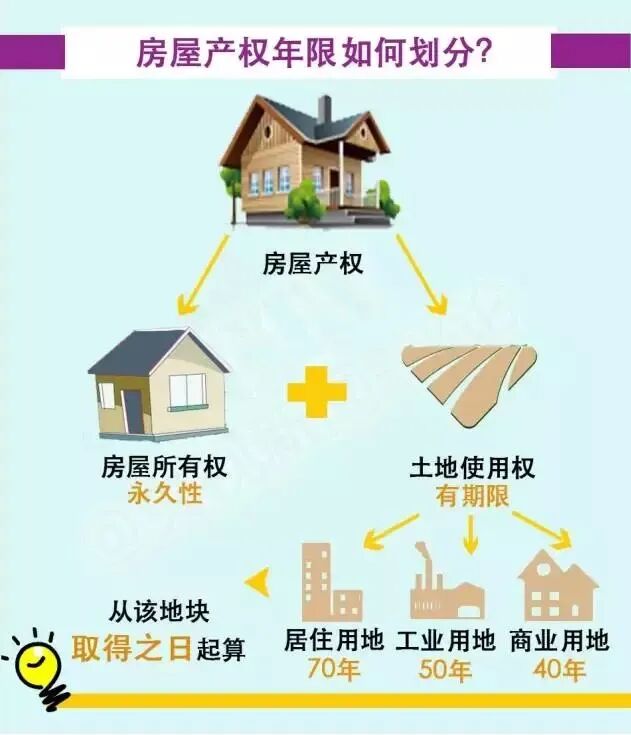 *,土地规划用途不同,按照我国相关法律法规,我们平常的住宅建设用地*高是70年,工业、教育、科技、文化、卫生、体育用地,以及综合用地,*高为50年,而商业、旅游和娱乐用地,*高只有40年。所以40年、50年和70年这三种不同产权的房子,用途是不一样的;而市场所销售的普通商品住宅以70年产权居多,也有一部分产权年限为40年或50年的住宅,而这部分通常以SOHO、商住两用型住宅、酒店式公寓等为主要形式。