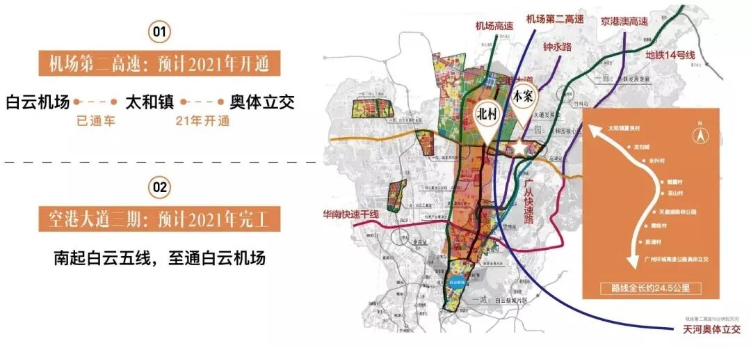 连接机场高速、华南和北二环高速,畅达白云机场及广州各大区。