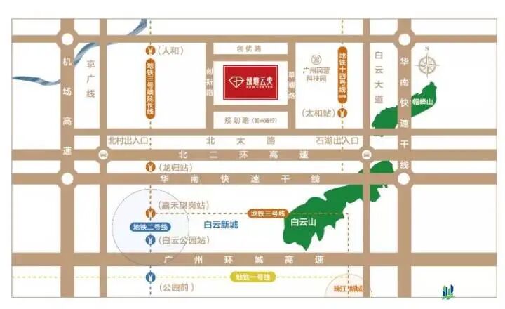 项目略临地铁3号线龙归站以及14号线太和站一站达嘉禾望岗(2、3号线交汇点),8站达天河CBD,4站达白云新城。