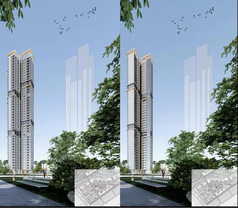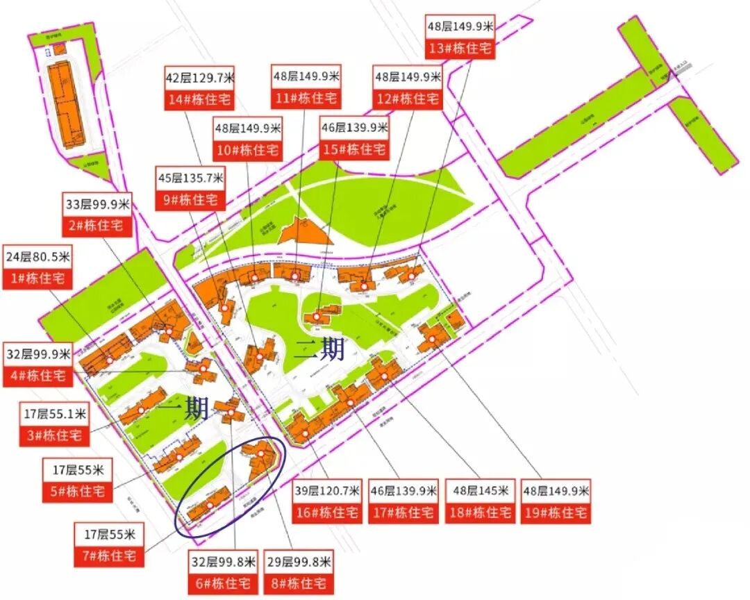 地块共规划19栋层高为17-48的住宅,*高为48层149.9米。