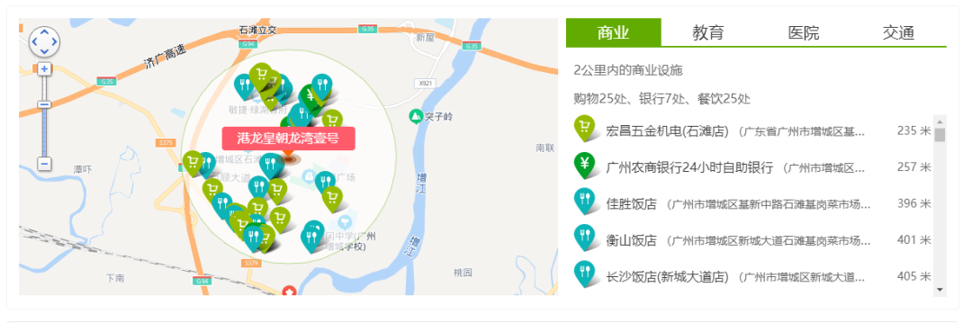片区内坐拥前海人寿三甲医院、挂绿城综合三甲医院、增城万达、石滩商业*(规划)、中俄贸易产业园商业*(规划)及低碳产业园总部,