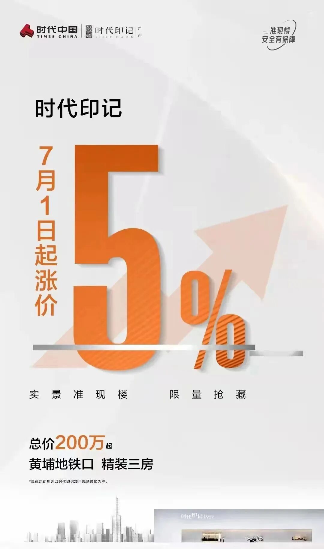 合生*城、中洲紫轩、时代印记、越秀滨江·星航TOD等项目都纷纷喊涨,其中时代印记涨价幅度*大,宣布在7月1日起,涨价5%!