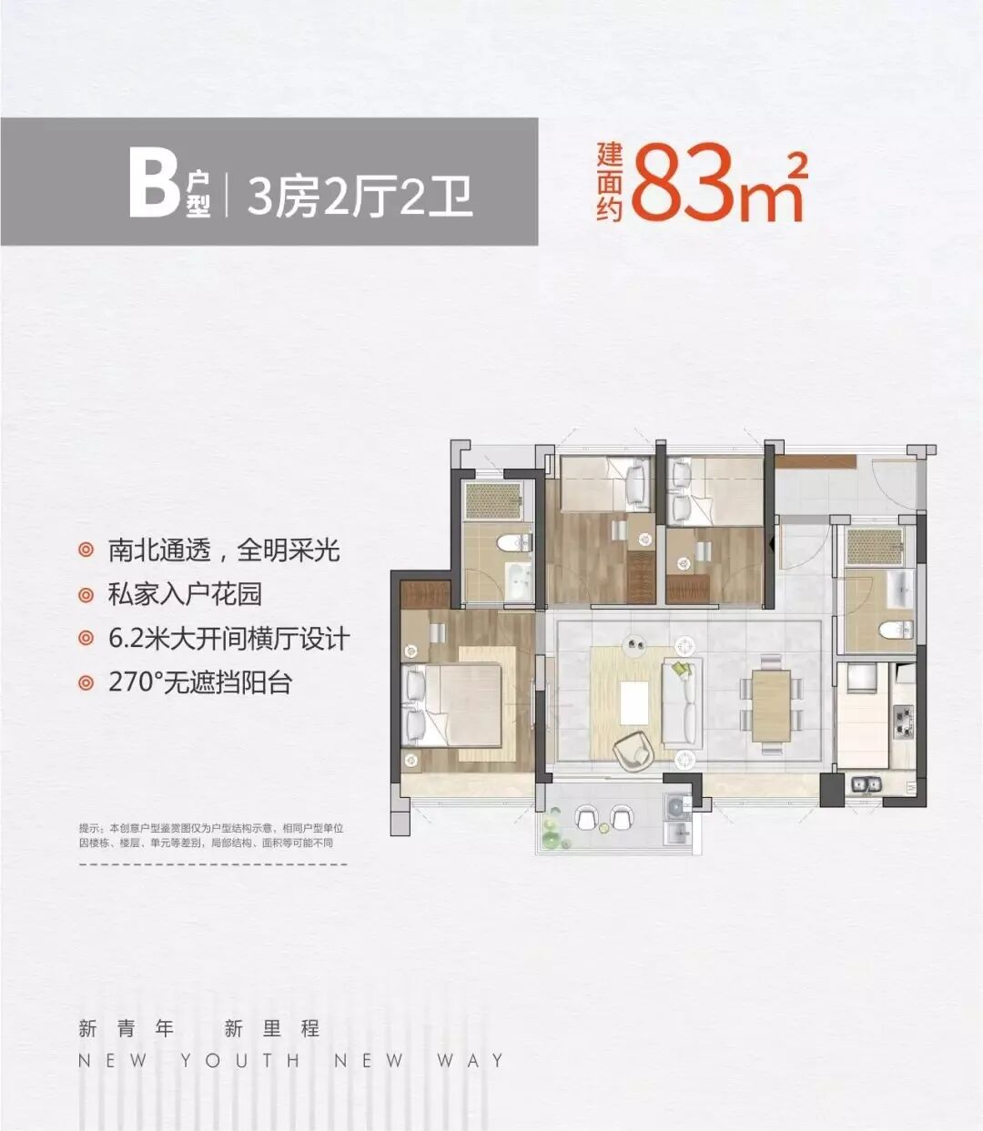 项目打造建面约75-85㎡品质三房,总价120万起,更低门槛轻松上车。
