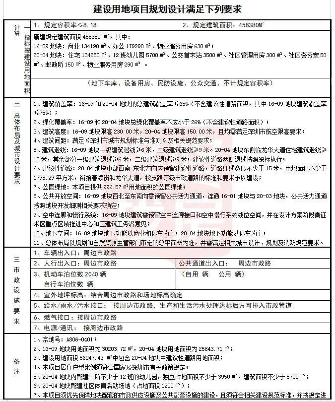 2、龙华民治街道A806-0400宗地:二类居住用地,土地面积约12009平方米,建筑面积72050平方米,挂牌起始价19.39亿,*高限价22.29亿,普通商品住房平均销售价格不高于72450元/平方米。