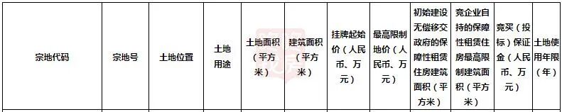 住宅部分拟建设普通商品住房和公共租赁住房,初始建设公共租赁住房建面6870㎡,竞企业自持的保障性租赁住房*高限制建面13740㎡,宗地普通商品住房平均销售价格不高于72450元/平方米。