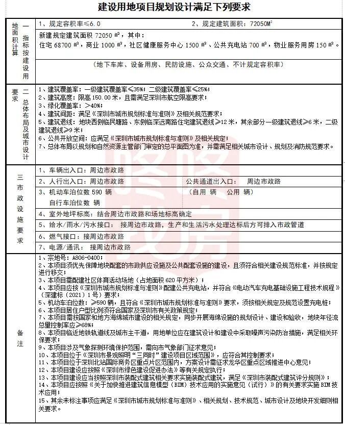 根据出让条件,该宗地方项目方案设计需征求龙华区*区域推进*意见。竞得人需落实海绵城市建设、绿色建筑、装配式建筑、建筑信息模型(BIM)技术应用的相关规定。
