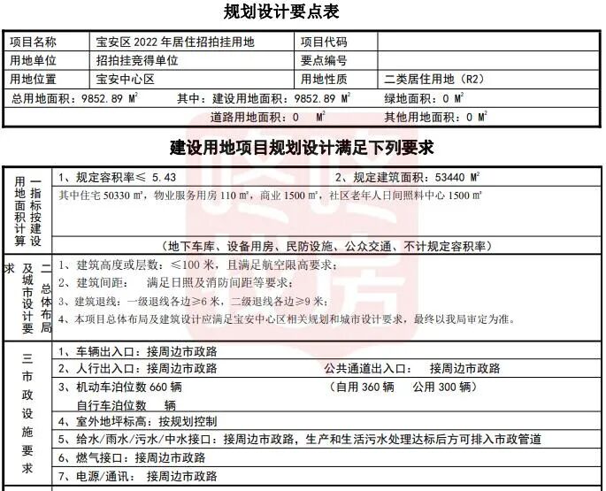 7、宝安新安街道A003-0434宗地:二类居住用地,土地面积9852.89平米,总建面53440平米,挂牌起始价16.65亿,建成 普后通商品住房平均销售价格不高于88600元/平方米。