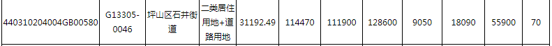 宗地号G13305-0046,土地位置坪山区石井街道,土地用途二类居住用地+道路用地,土地面积31192.49平方米,建筑面积114470平方米,挂牌起始价111900万元,*高限制地价128600万元,初始建设无偿移交政府的保障性租赁住房建筑面积9050平方米,竞企业自持的保障性租赁住房*高限制建筑面积18090平方米,土地使用年限70年。