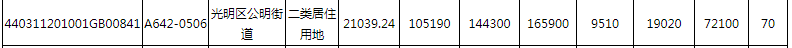 宗地号A642-0506,土地位置光明区公明街道,土地用途二类居住用地,土地面积21039.24平方米,建筑面积105190平方米,挂牌起始价144300万元,*高限制地价165900万元,初始建设无偿移交政府的保障性租赁住房建筑面积9510平方米,竞企业自持的保障性租赁住房*高限制建筑面积19020平方米,土地使用年限70年。