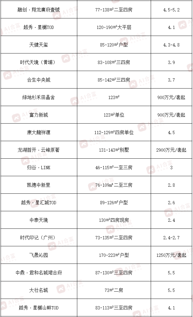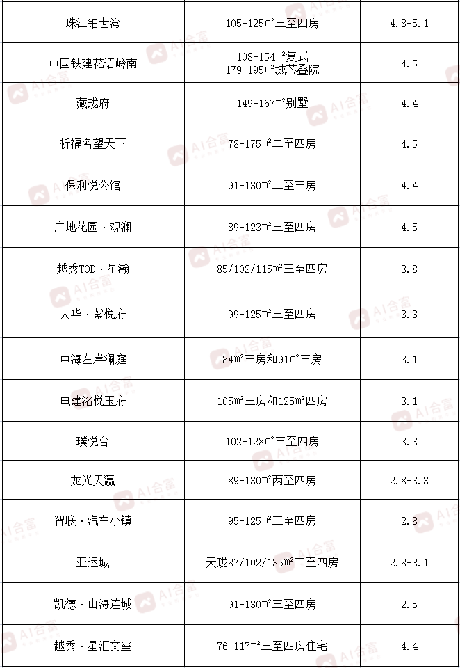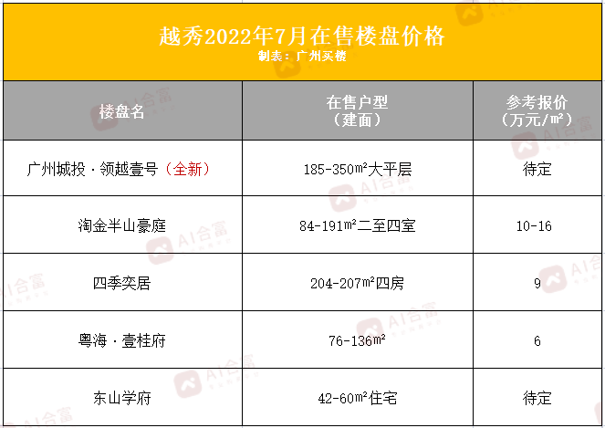 据买楼君统计,越秀区目前新房*,在手的项目仅有5个,二期价格均在10万/平以上。