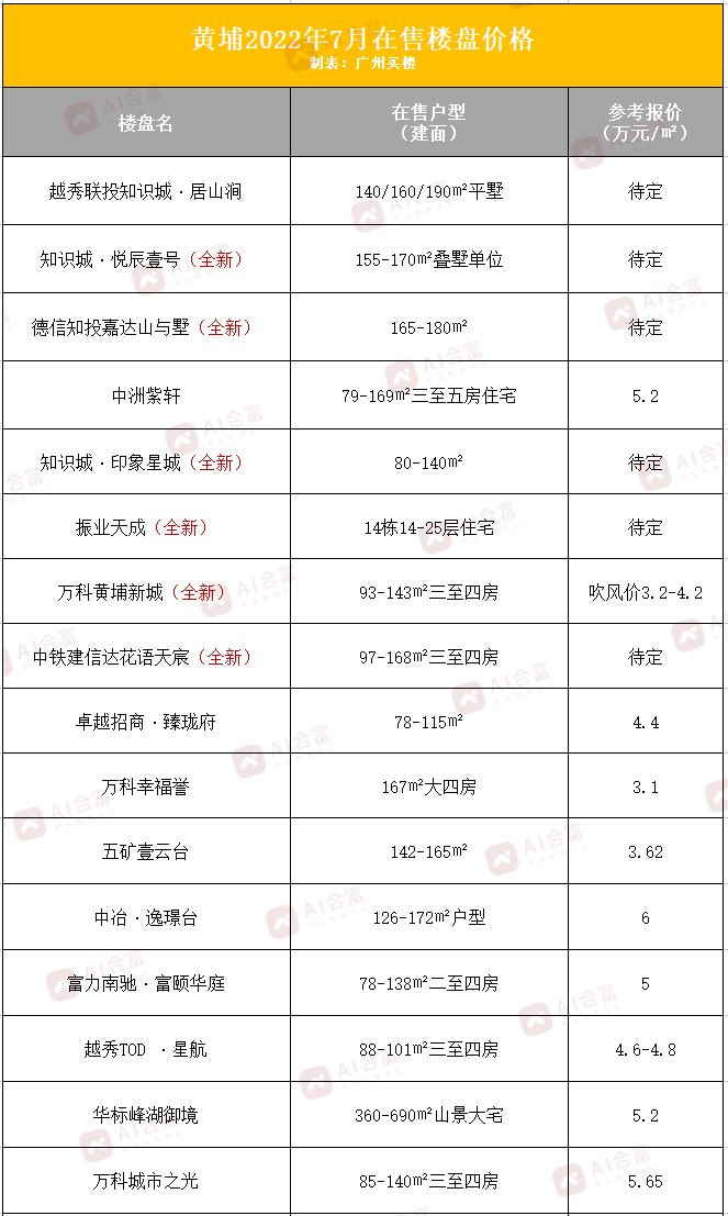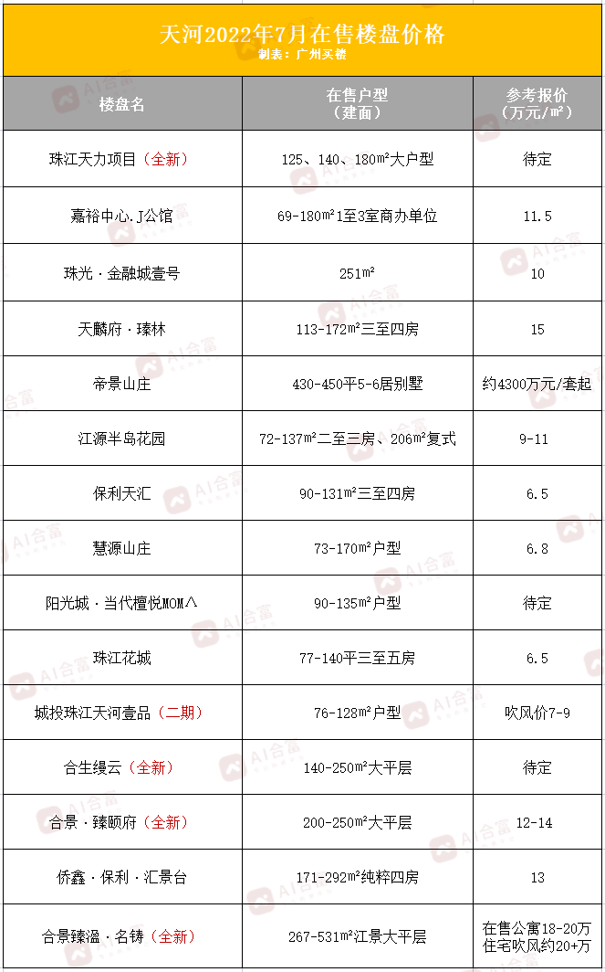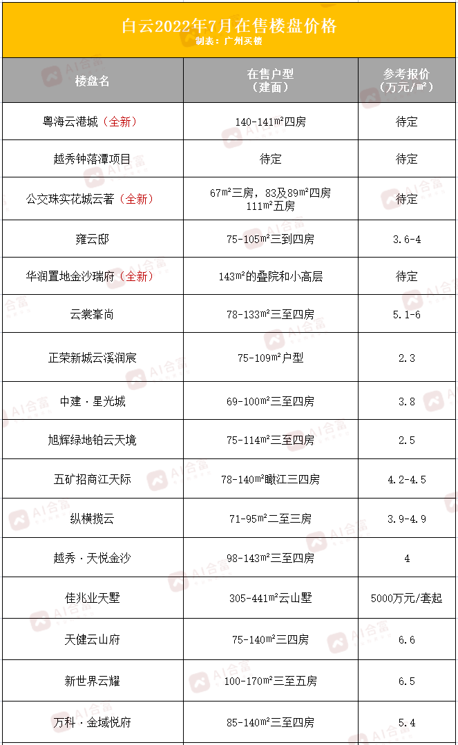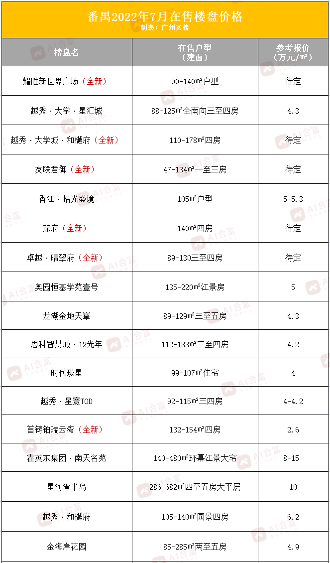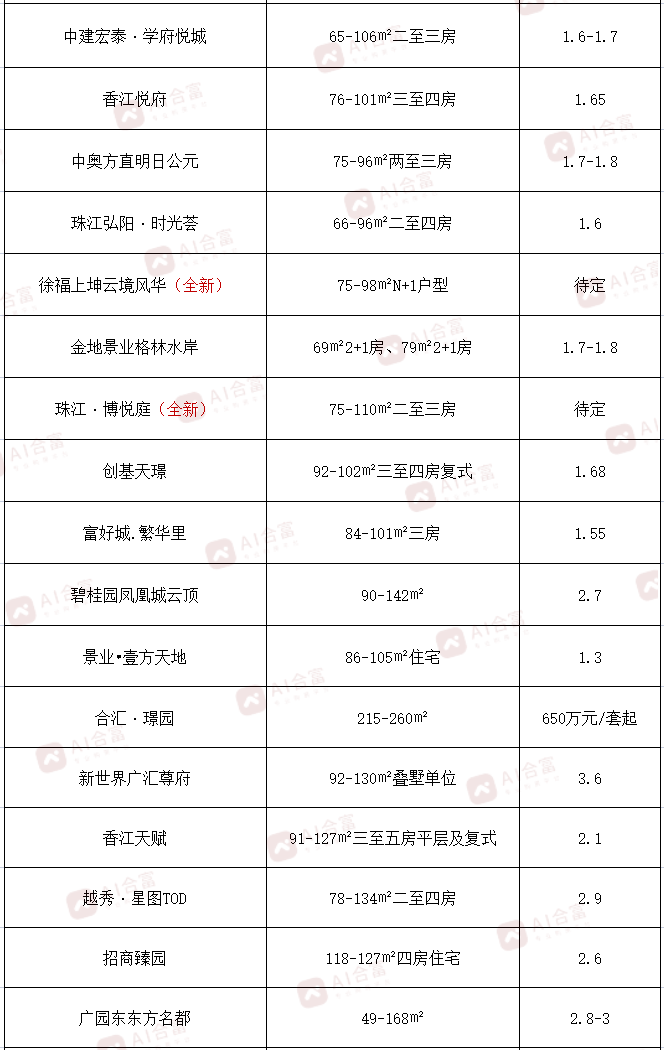 事不宜迟,今天,我们整理了广州11区各个项目*新的价格!