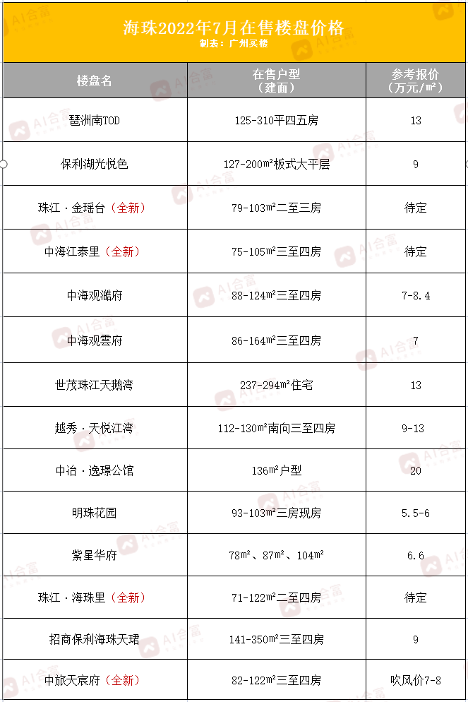 据买楼君统计,目前海珠区在售的一手项目有约14个,作为豪宅集中的区域,这里今年有不少项目入市,不少置业门槛达到8万+/㎡。