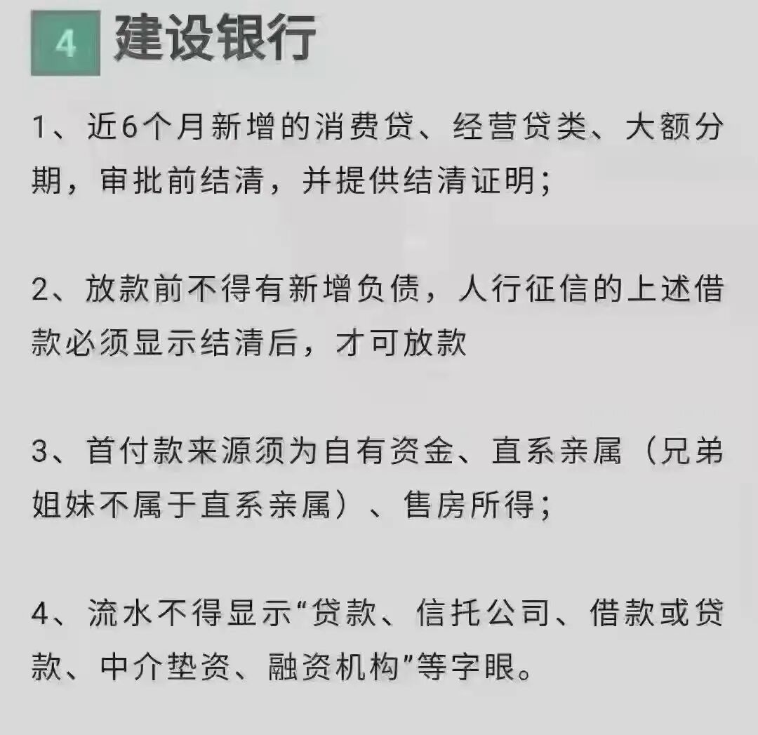 (3)放款前会查客户的征信,如出现新增的个人消费贷款、经营贷款和信用卡分期超10万的,都要求结清。(上述提及的贷款类型:汽车消费贷、商用房贷款、助学贷款等除外)