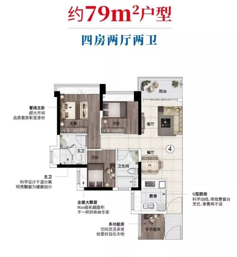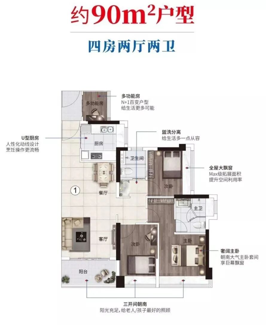 珠江·花屿花城深谙当代广州新菁英的居住需求,采用N+1花城系产品打造理念,匠造79-98㎡区域内*的户户带主套四房产品,同等面积多一主套,接近9成超高实用率,突破空间使用极限,真正地实现“小面积,大享受”。全生命周期户型,舒适的空间尺度满足三孩时代、三代同堂的居住需求。