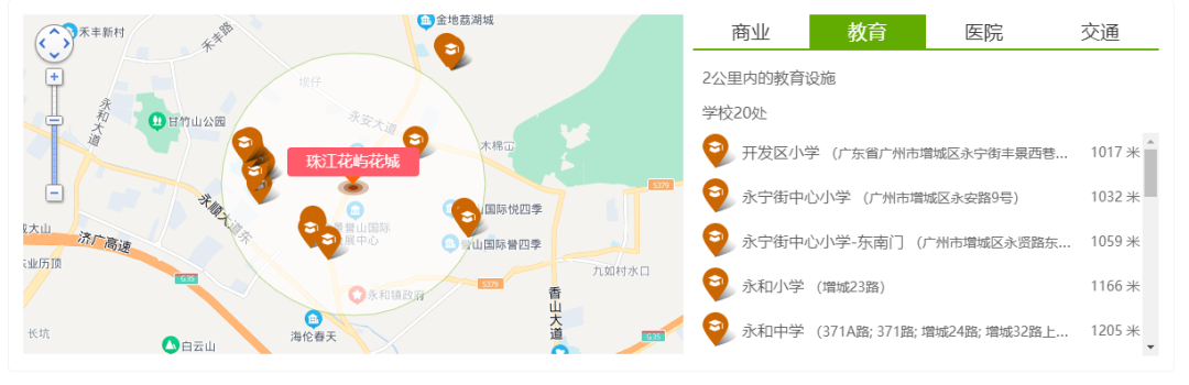学校:*永和幼儿园、新城幼儿园(区一级),中小学永宁街*小学、*广州市增城开发区第二小学。